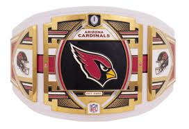 The Arizona Cardinals Championship Belt is a unique and iconic symbol of excellence in American football, particularly within the organization. This custom-made belt is designed to celebrate outstanding achievements and milestones achieved by the team or individual players. Typically crafted with high-quality materials, the belt often features a large, ornately designed center plate that showcases the Cardinals' logo, flanked by smaller side that can be customized with individual achievements or team milestones. The belt's strap is usually made from leather, adding a classic, prestigious look. It's not just a piece of memorabilia; it represents the hard work, dedication, and success of the Cardinals' team and its players. The belt is often awarded ceremonially, symbolizing the recognition of exceptional performance and contribution to the team's success. This championship belt is a source of pride for the players and the fans alike, encapsulating the spirit and history of the Arizona Cardinals in American football.