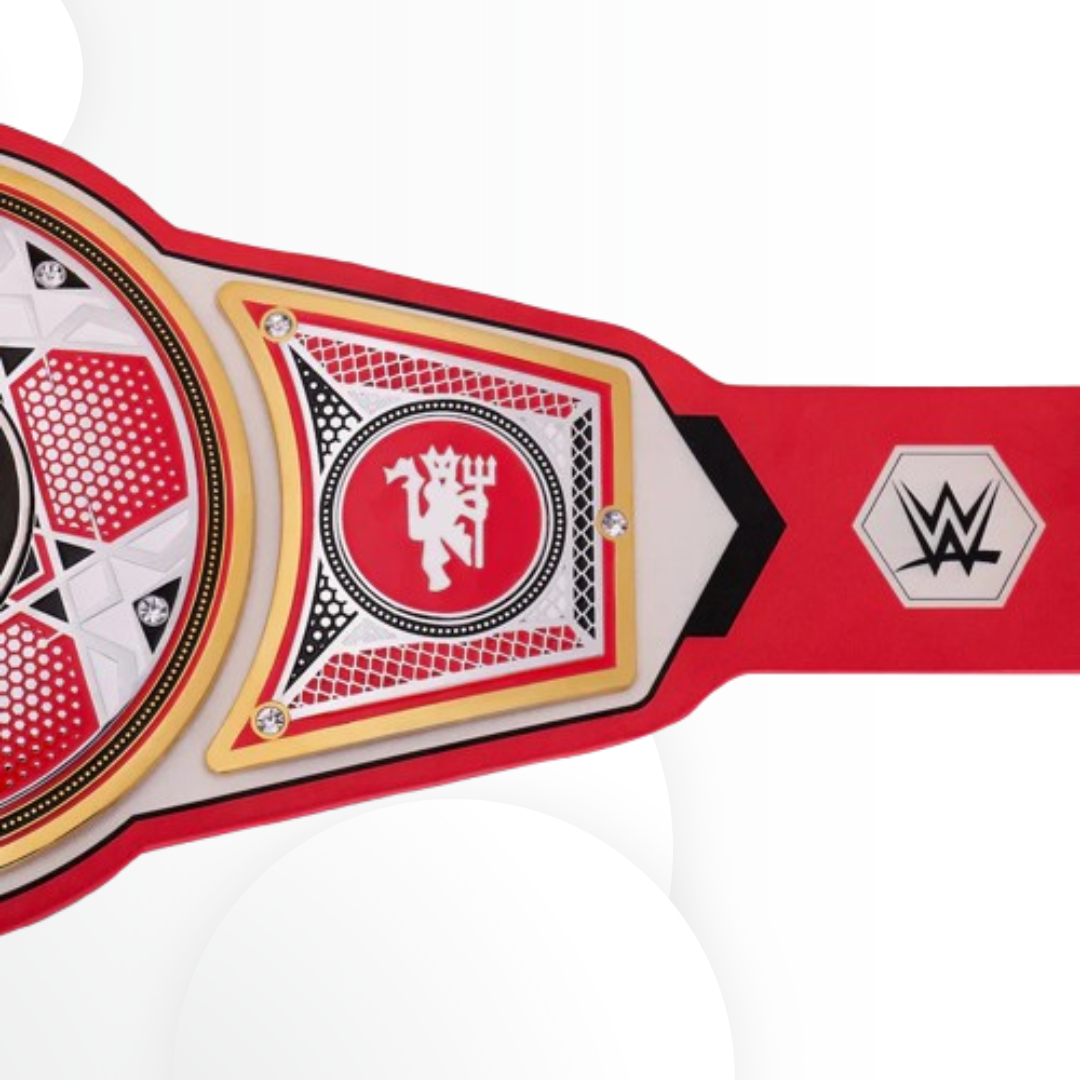 Celebrate the perfect fusion of sports and entertainment with the Official WWE x Manchester United Legacy Championship Replica Belt. This exclusive collectible honors the legacy of WWE and the iconic football club Manchester United combining two worlds of champions in one stunning design.