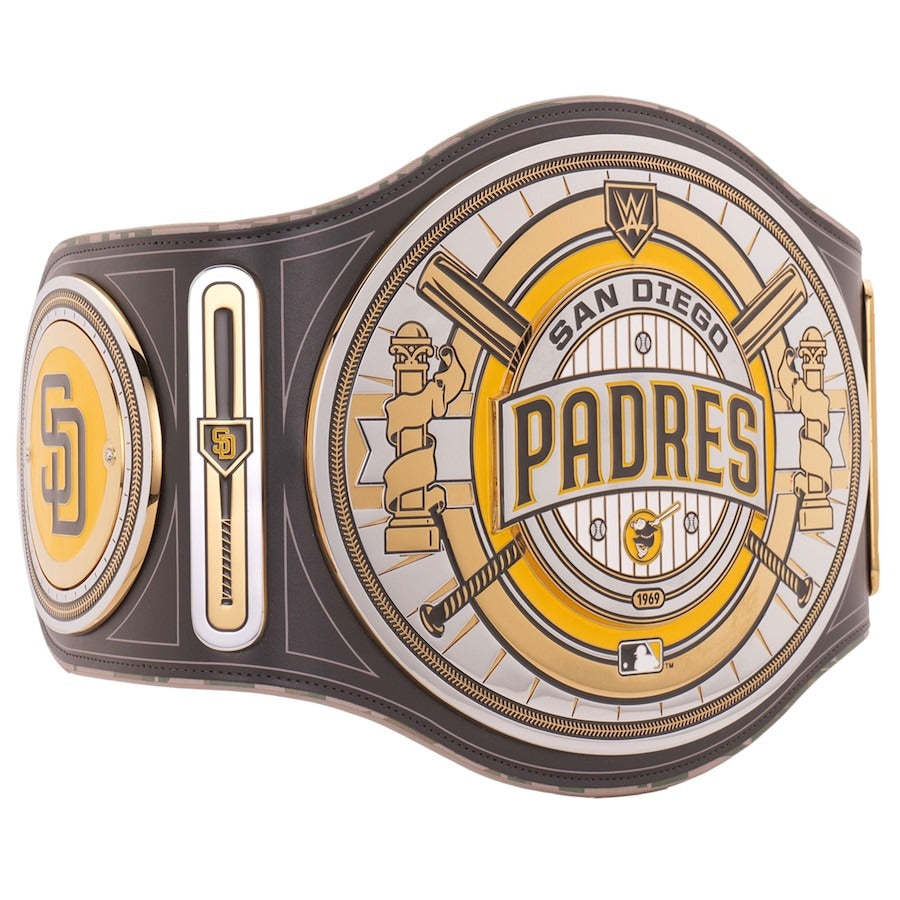 Celebrate the San Diego Padres' dynamic legacy and memorable MLB achievements with this distinguished collectible. Expertly crafted, this championship belt showcases the iconic Padres logo, team colors, and intricate designs chronicling their on-field triumphs. Constructed with premium San Diego Padres MLB materials, this belt embodies the Padres' vibrant energy and unwavering commitment to excellence. A must-have for any Padres fan or discerning collector, this belt transcends mere accessory; it is a symbol of unwavering loyalty and a timeless tribute to the team's storied history. Claim yours today and proudly display your unwavering Padres devotion.