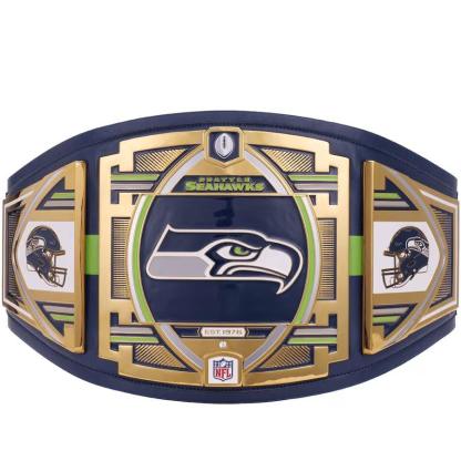The Seattle Seahawks Championship Belt is a masterpiece that embodies the fierce spirit of the 12th Man. Crafted with meticulous care, it pays tribute to a franchise that has revolutionized the game. The centerpiece prominently displays the iconic Seahawks logo, proudly embossed against a backdrop of striking blue and green, reminiscent of the roaring waves of CenturyLink Field. This is more than an accessory; it's a symbol of the unbreakable bond between the team and its passionate fanbase. The premium materials and adjustable leather strap ensure both durability and comfort, making it a cherished item for any Seahawks enthusiast. Owning this belt is like holding a piece of history, a tangible connection to the legendary victories, the iconic plays, and the indomitable spirit that define Seattle Seahawks football. It's an emotional journey, a symbol of pride, and an enduring legacy.