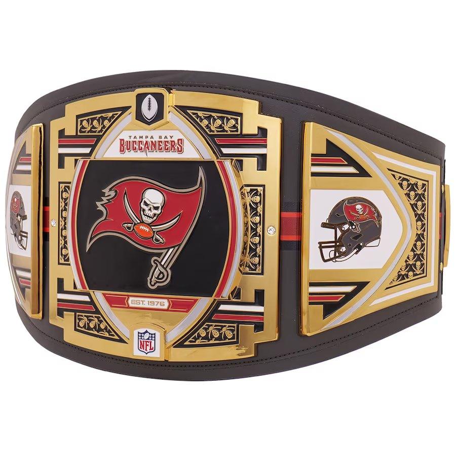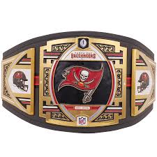 The Tampa Bay Buccaneers is a treasure trove of victory, a testament to the Buccaneers' relentless pursuit of excellence. Crafted with exquisite attention to detail, it encapsulates the essence of a franchise that has risen to the pinnacle of the NFL. The centerpiece proudly displays the iconic Buccaneers logo, set against a backdrop of fierce red and bold pewter, reminiscent of the electrifying atmosphere of Raymond James Stadium on game day. This belt is more than just an accessory; it's a symbol of the unbreakable bond between the team and its passionate fanbase. The premium materials and adjustable leather strap ensure both durability and comfort, making it a cherished item for any Buccaneers enthusiast. This belt is an emotional journey, a celebration of every Super Bowl victory, every iconic play, and the enduring love for the Buccaneers. It's a tangible reminder of the history, the glory, and the passion that are synonymous with Tampa Bay Buccaneers football.