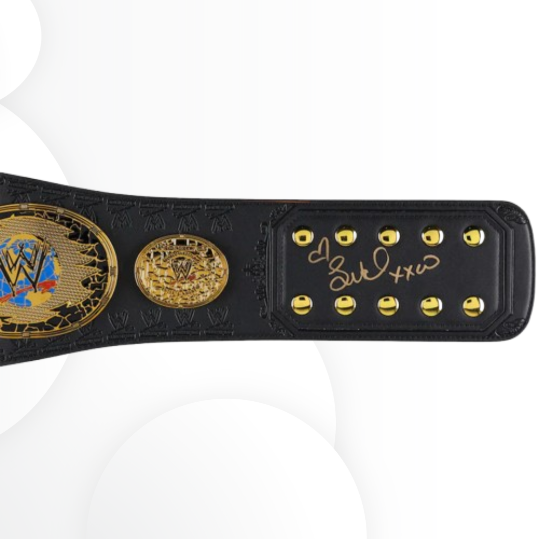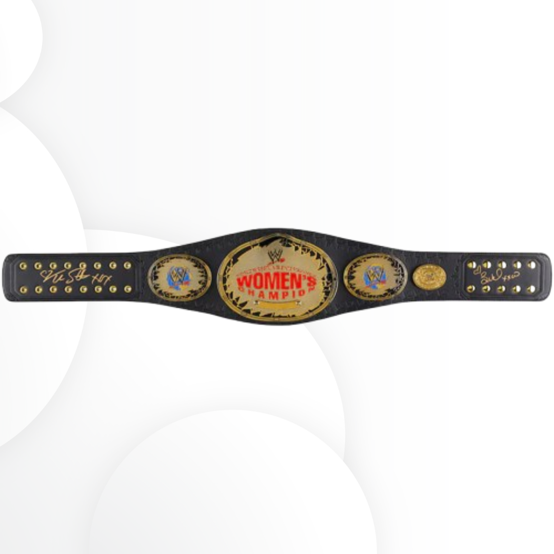 Honor two of WWE’s most iconic female Superstars with this Trish Stratus & Lita Signed Women’s Championship Attitude Era Replica Belt. Expertly crafted to replicate the championship design from the legendary Attitude Era this belt features premium leather straps intricately detailed metallic plates and the authentic autographs of both Trish Stratus and Lita.